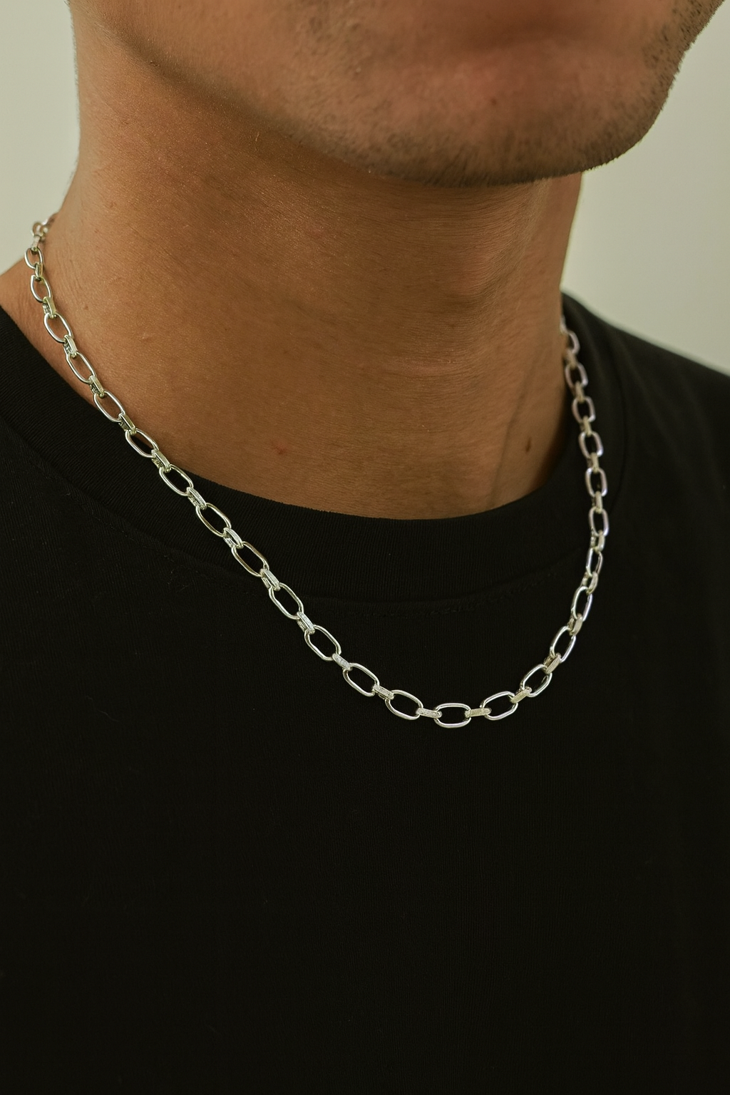 Sleek silver oval-link chain designed for everyday style, offering a polished minimalist look for men.