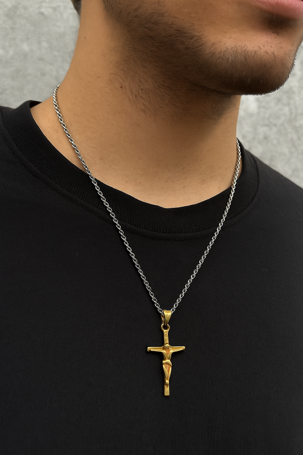 Perfect everyday necklace for men, featuring detailed Jesus cross design with durable finish and sleek chain.